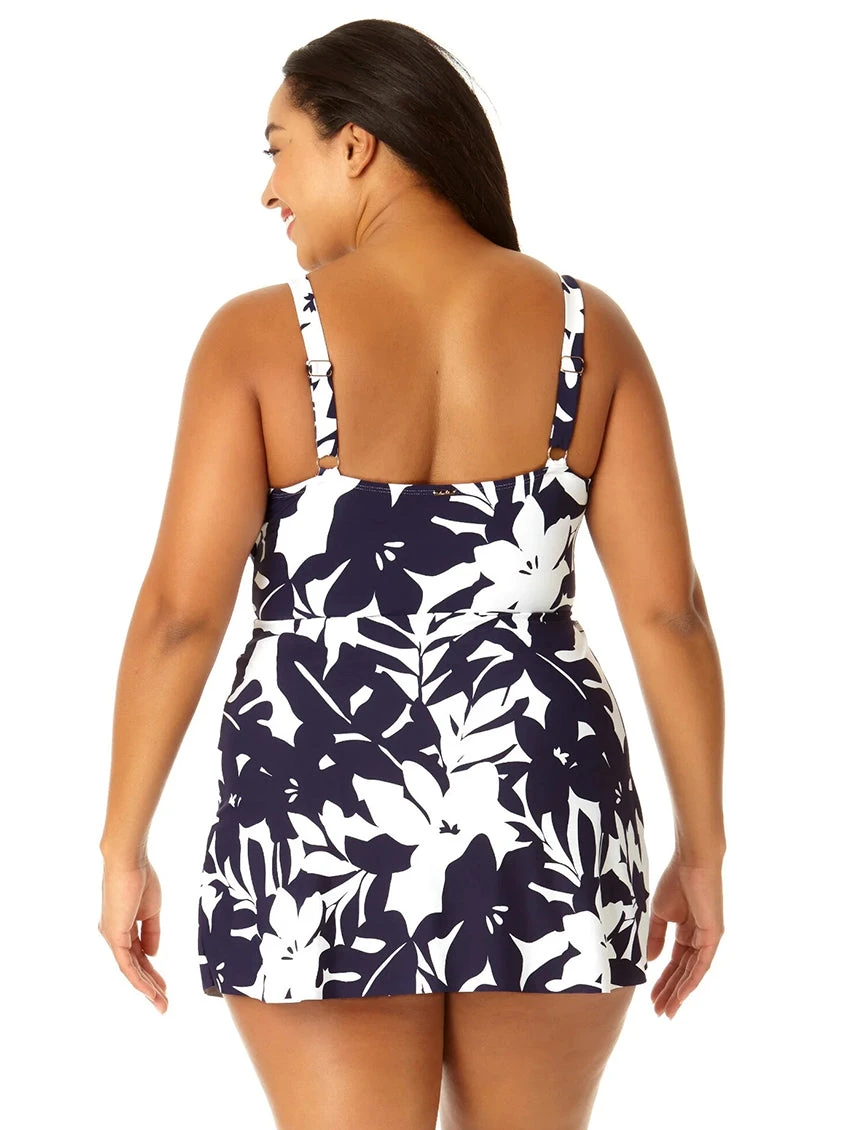 Is it a dress? Is it swimwear? It’s both for the Anne Cole Surplice Plus Swim Dress! Featuring a surplice style with deep v-neckline, light support, removable cups, and adjustable straps. Full coverage and modern style – beach please!