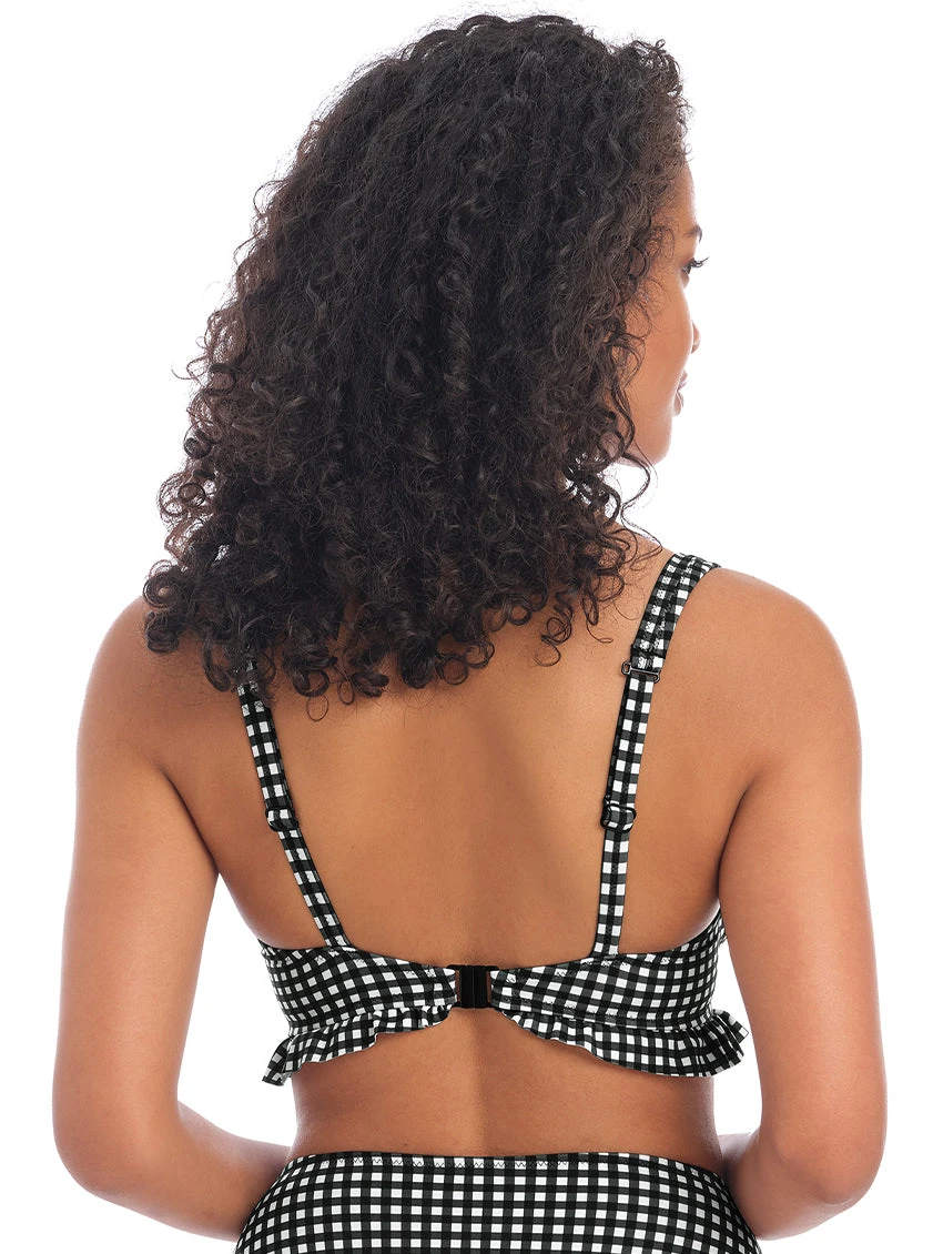 The new Check-in High Apex Bikini Top features a low plunging neckline. Complete with J-hook feature for easy conversion to a racer back style.